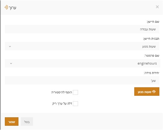 בתבנית החיישן יש לבחור את “שעות מנוע”