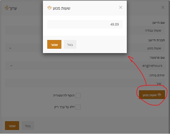 בשם הפרמטר יש לבחור ב “enginehours”